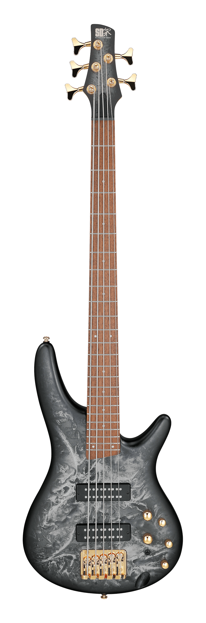 - Neck: The instrument has a sleek, fast-playing 5-piece maple/walnut SR5 neck which provides tonal clarity and superior attack.