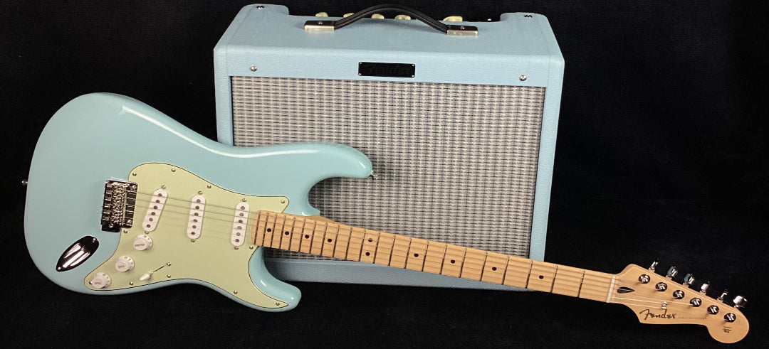 USED Fender FSR Standard Stratocaster Guitar and Matching Blues Junior Amp Set Daphne Blue